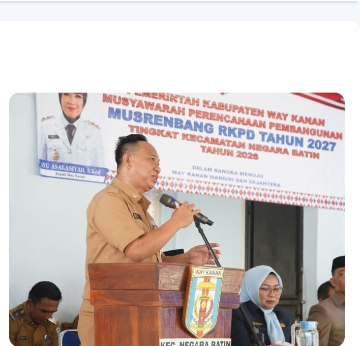 Way Kanan – Asisten Bidang Pemerintahan dan Kesejahteraan Rakyat Setdakab Way Kanan, Ixuan Akhmadi, S.Sos., M.M., membuka secara resmi Musyawarah Perencanaan Pembangunan (Musrenbang) Tingkat Kecamatan Negara Batin Tahun 2026, yang dilaksanakan di Aula Kecamatan Negara Batin, Senin (09/02/2026).